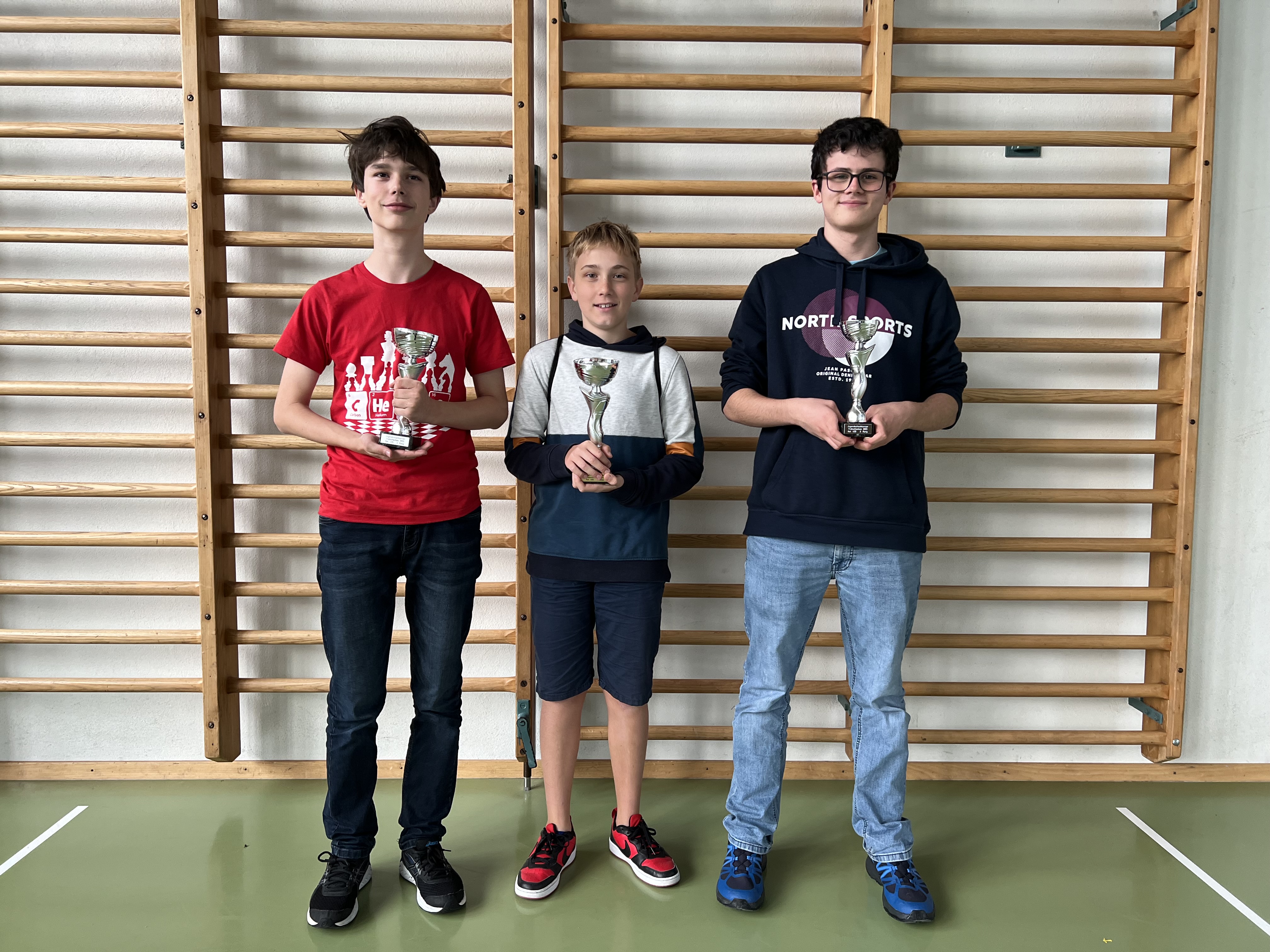 Rangliste: U10 U13 U20Podest U10: Von links: 2. Gabriel Hunziker (Thun SK), 1. Felix Phung (Baden SG), 3. Marti Ruiz Servent (Lyss-Seeland):
